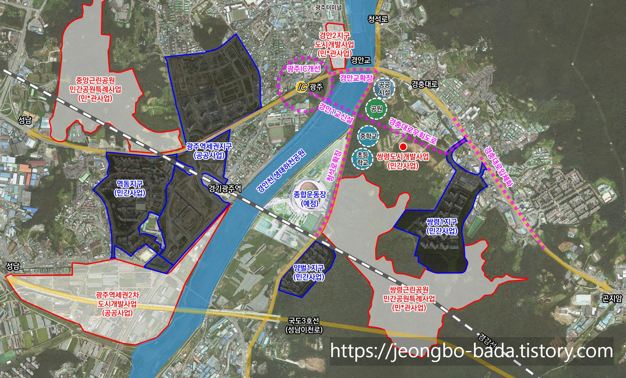 시는 경안동 및 쌍령동 주변 개발사업의 공공기여를 통해 경안교 확장 및 추가 경안1교 신설, 광주IC 연결로 정비 및 개설, 청석로 확장, 푸르지오 앞 교차로 입체화 등 1천억원 이상의 교통개선 사업비를 마련 중이다.
